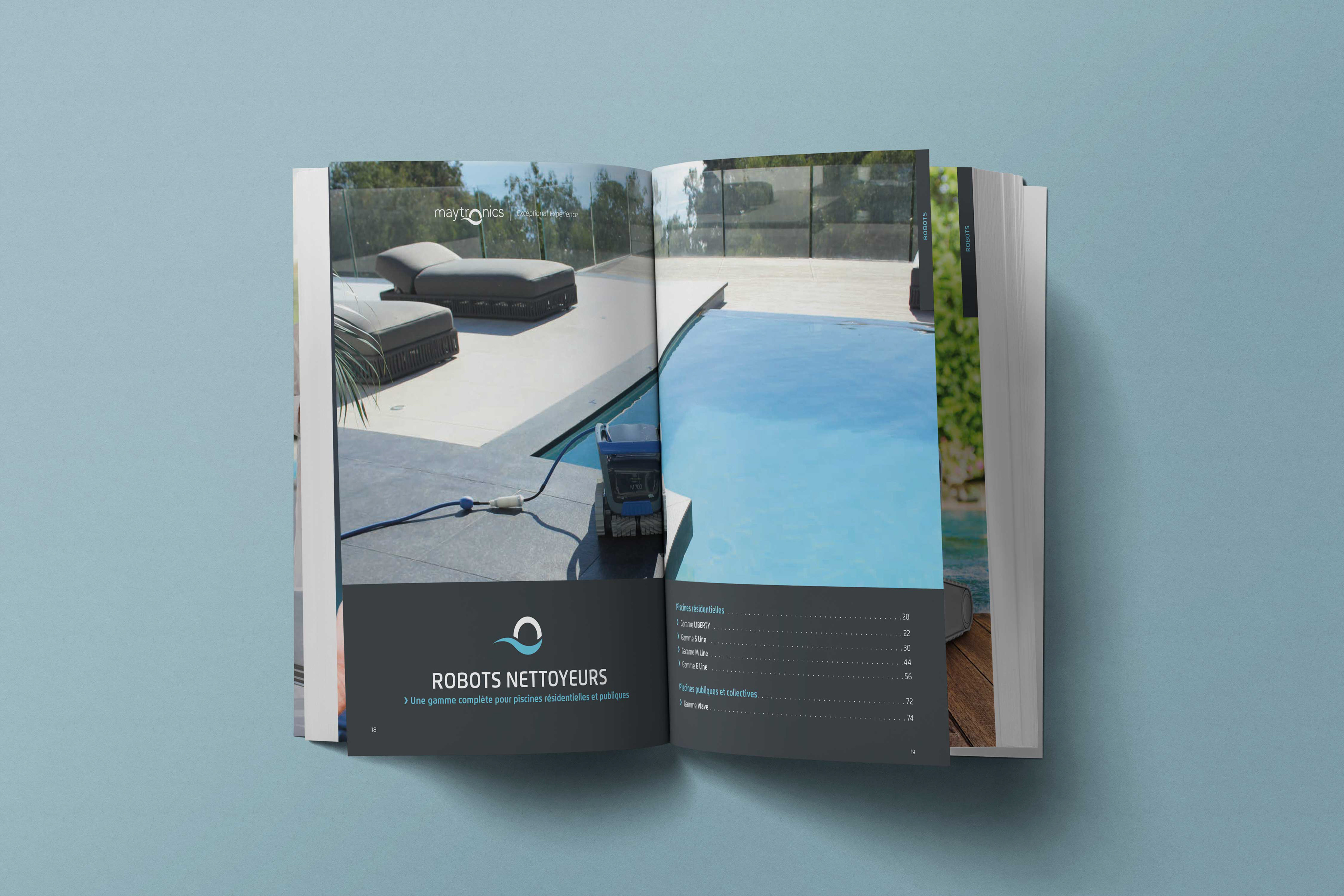 leader du nettoyage automatisé et de la sécurisation de piscines. Réalisation et exécution de catalogues - 200 pages et plus.