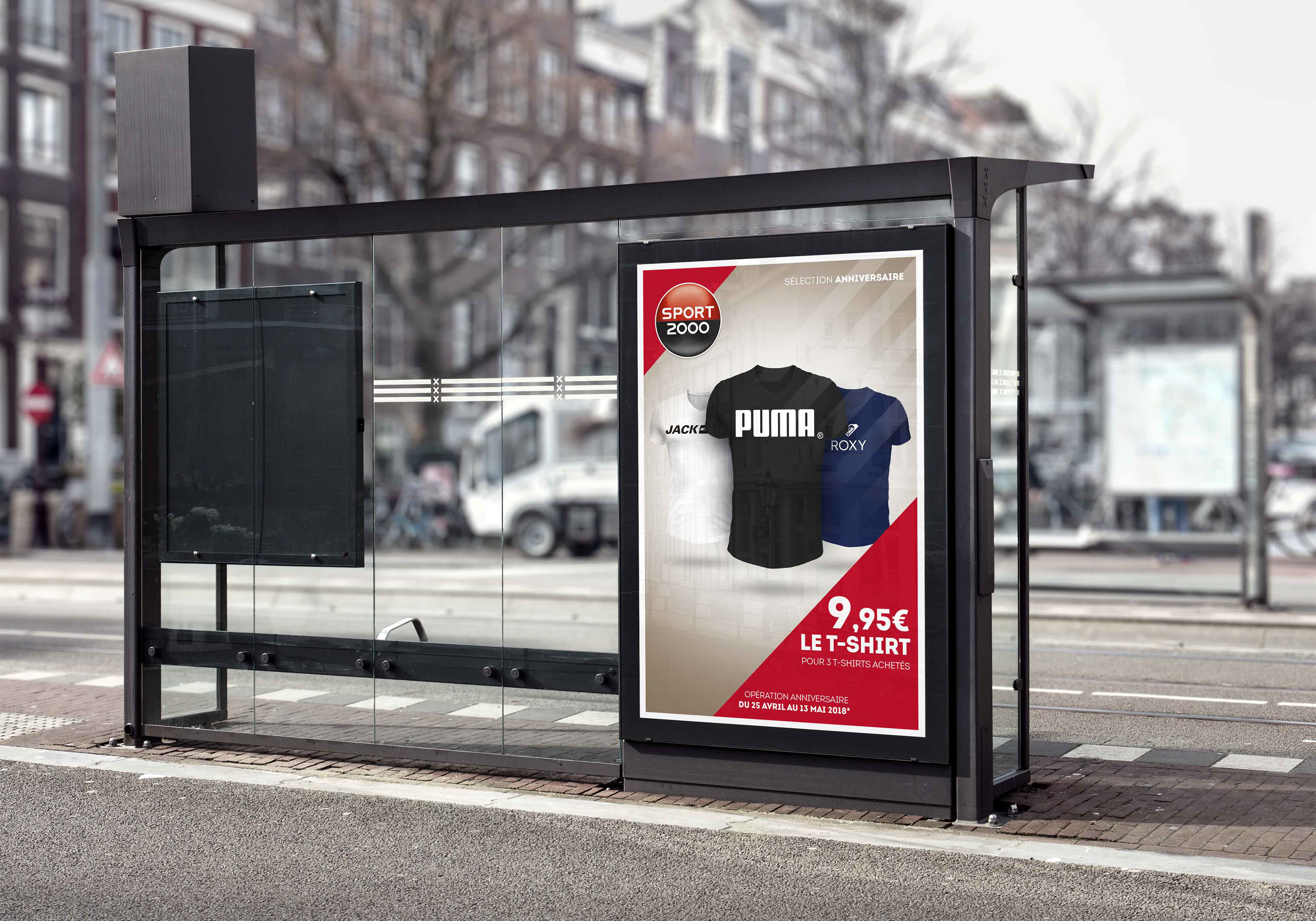 Direction artistique, création et intention de shoot photo affichage Sport 2000 opération t-shirt. Dossier réalisé pour le compte de l'agence Just Happiness