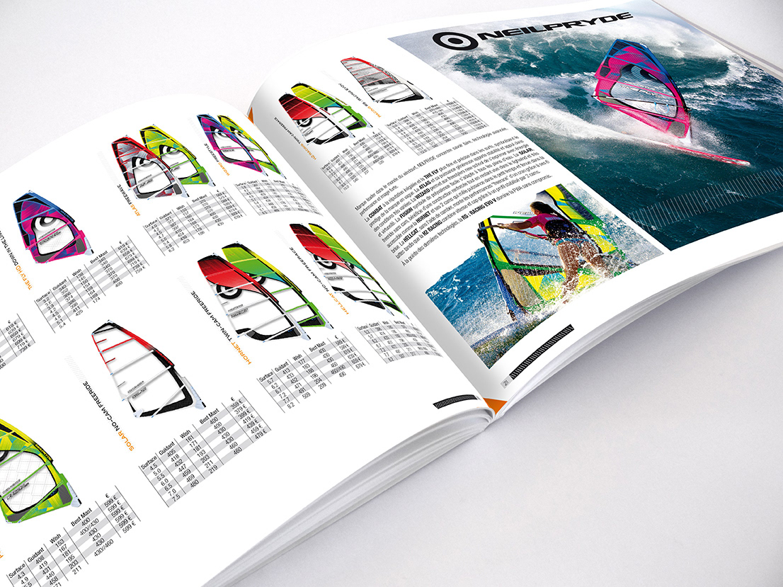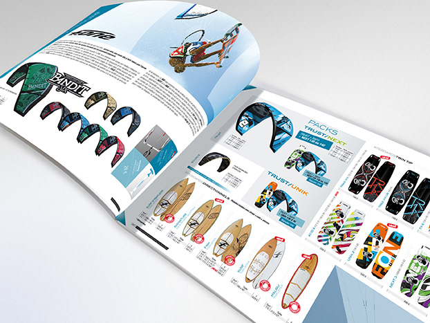 Direction artistique, photo compositing, mise en page et exécution du catalogue Vague et vent 2013