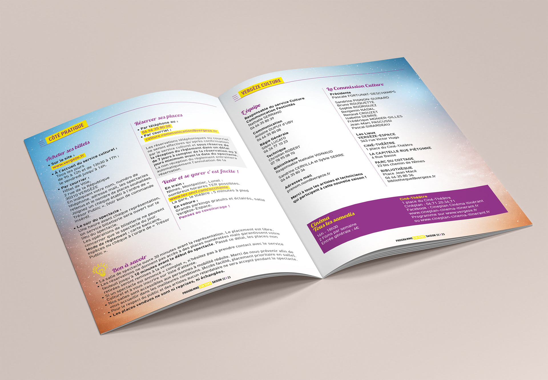 Direction artistique, création, mise en page et exécution des fichiers pré-presse du magazine culturel de la ville de Vergèze (30).